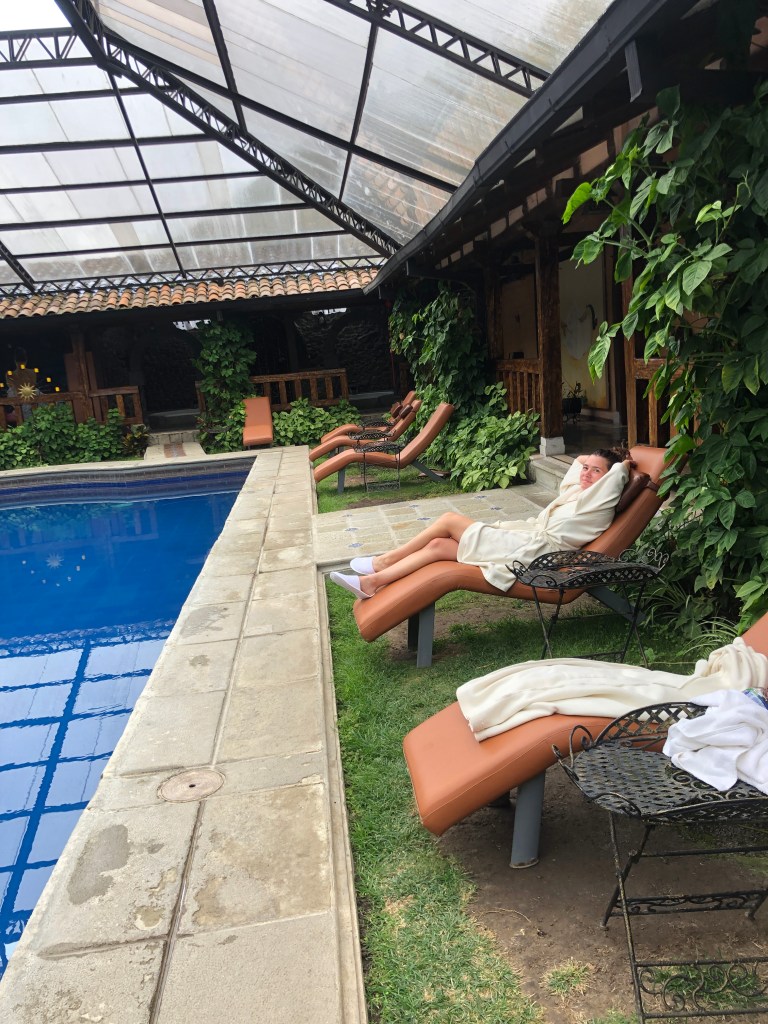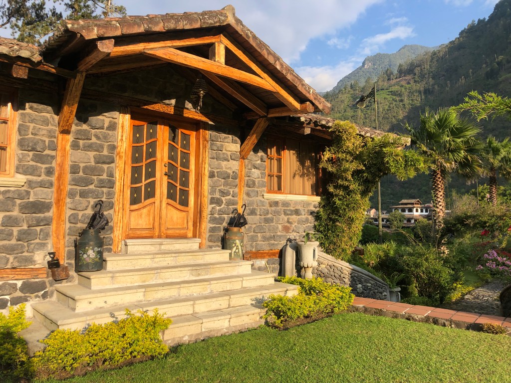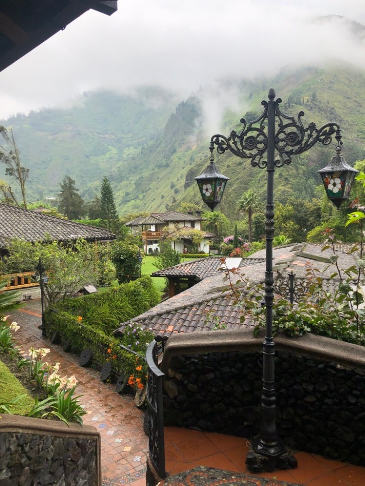 Unfortunately, the day we arrived in Baños, I was feeling sick and spent the whole first day in bed, watching Netflix, and soaking in a hot bath. On the upside, this was another place where we decided to cancel our hostel stay and instead, extend our fancier stay at the Samari Spa & Resort. This change of plans resulted in another upgraded room. Our new room was basically a house all to ourselves (including a yard), had the biggest jet tub I’d ever seen, a fireplace, and a truly giant comfortable bed.