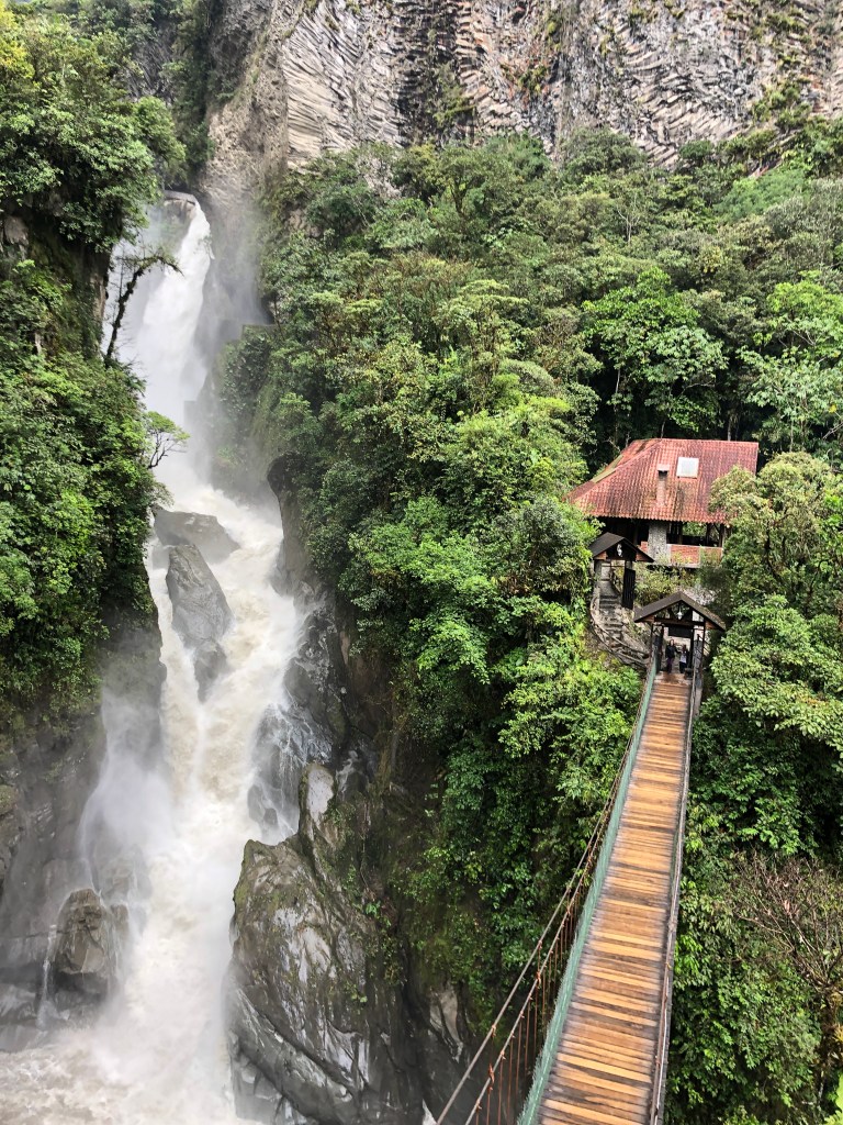 Our next destination was Baños. On our first trip to Ecuador back in 2019, everyone we met (including locals) kept asking us if we were planning to go to Baños, and when we answered “no” we were always met with disbelief and a strong recommendation to visit. So on this trip, we made sure to book a few days to explore this town known for its volcanos, hot springs, adventure sports, and many, many waterfalls.