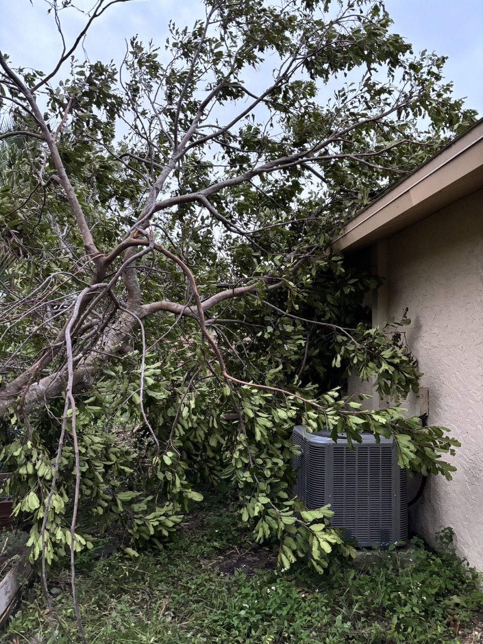 About 80% of our fence was down, our roof was on, but missing quite a few shingles, and a decent sized tree had fallen and was leaning on the house/roof. We took a big sigh of relief.